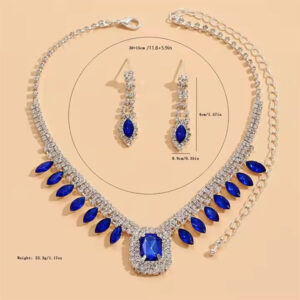 Fashion-Jewelry- Luxury Dinner Dress Jewelry Black royal blue jewel earrings necklace set B0017